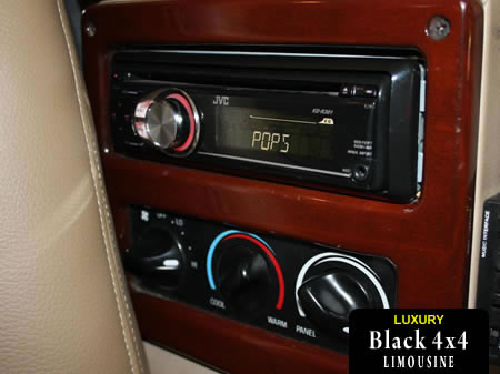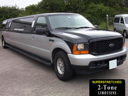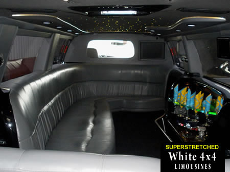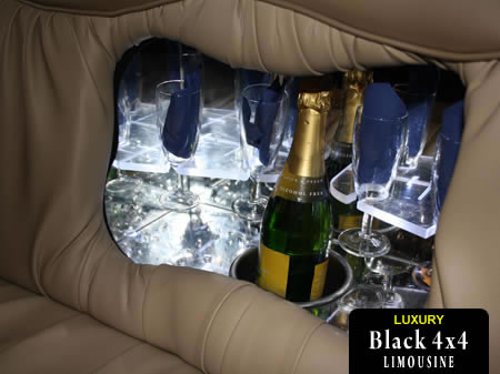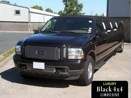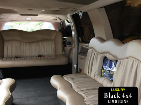 Our fleet of super stretched Hummer style limos includes this sleek Excursion in black. This is an ideal set of wheels for a stag night or lad's cruise around town. The black 4x4 alse comes with outstanding audio system, leather seating, funky colour change lights, ice buckets and bar area. Enjoy the bubbly with the clean set of champagne flutes! Licensed for upto 16 passengers per journey.